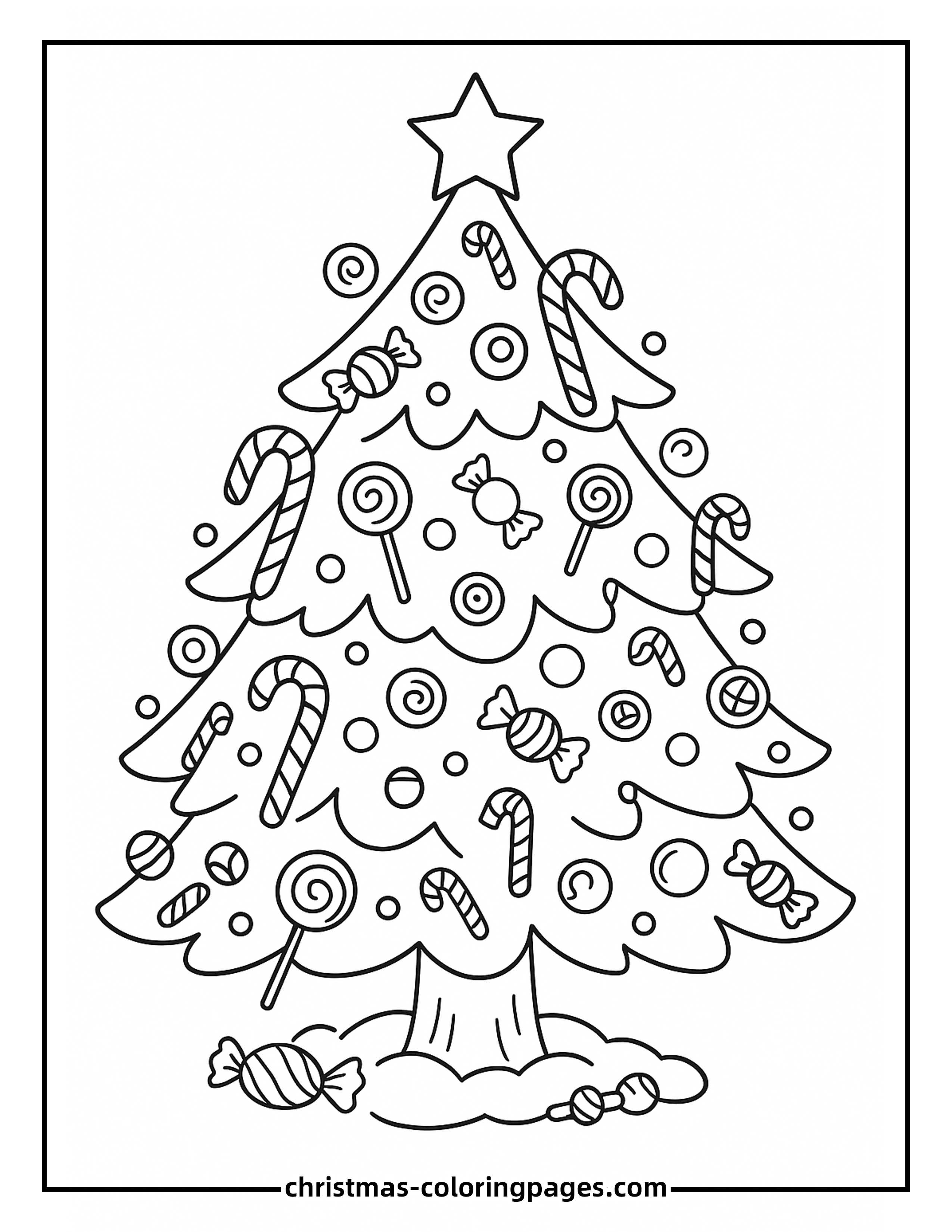 - Decorated Christmas Tree Coloring Page with Ornaments