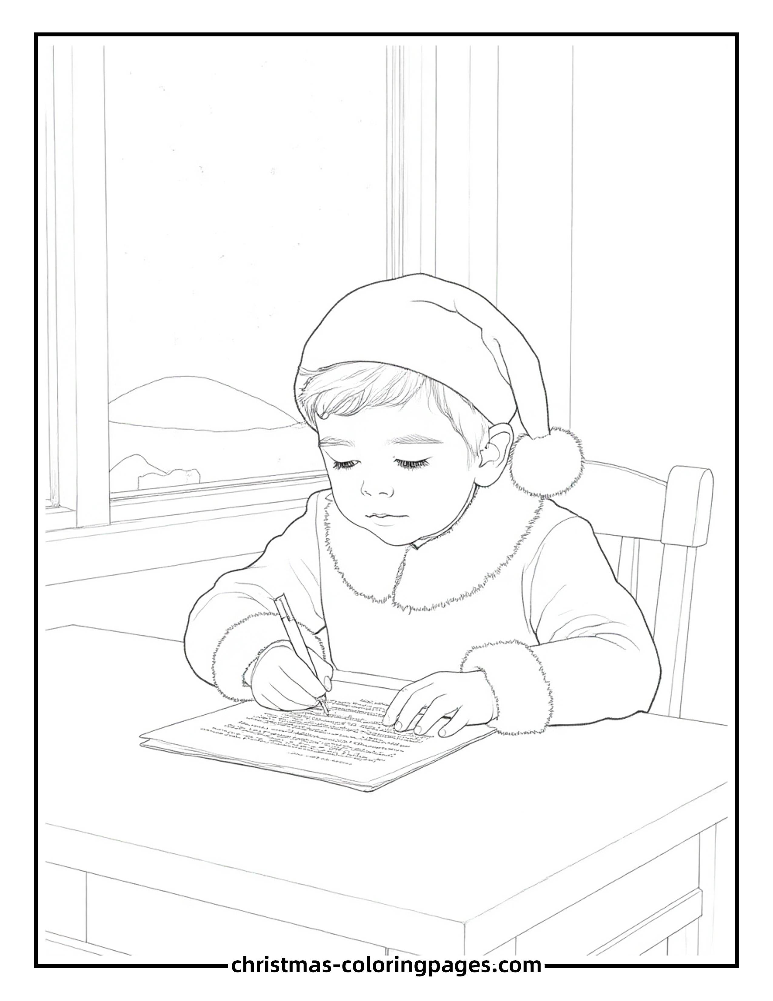 - Easy Christmas Coloring Pages – Child Writing Letter to Santa