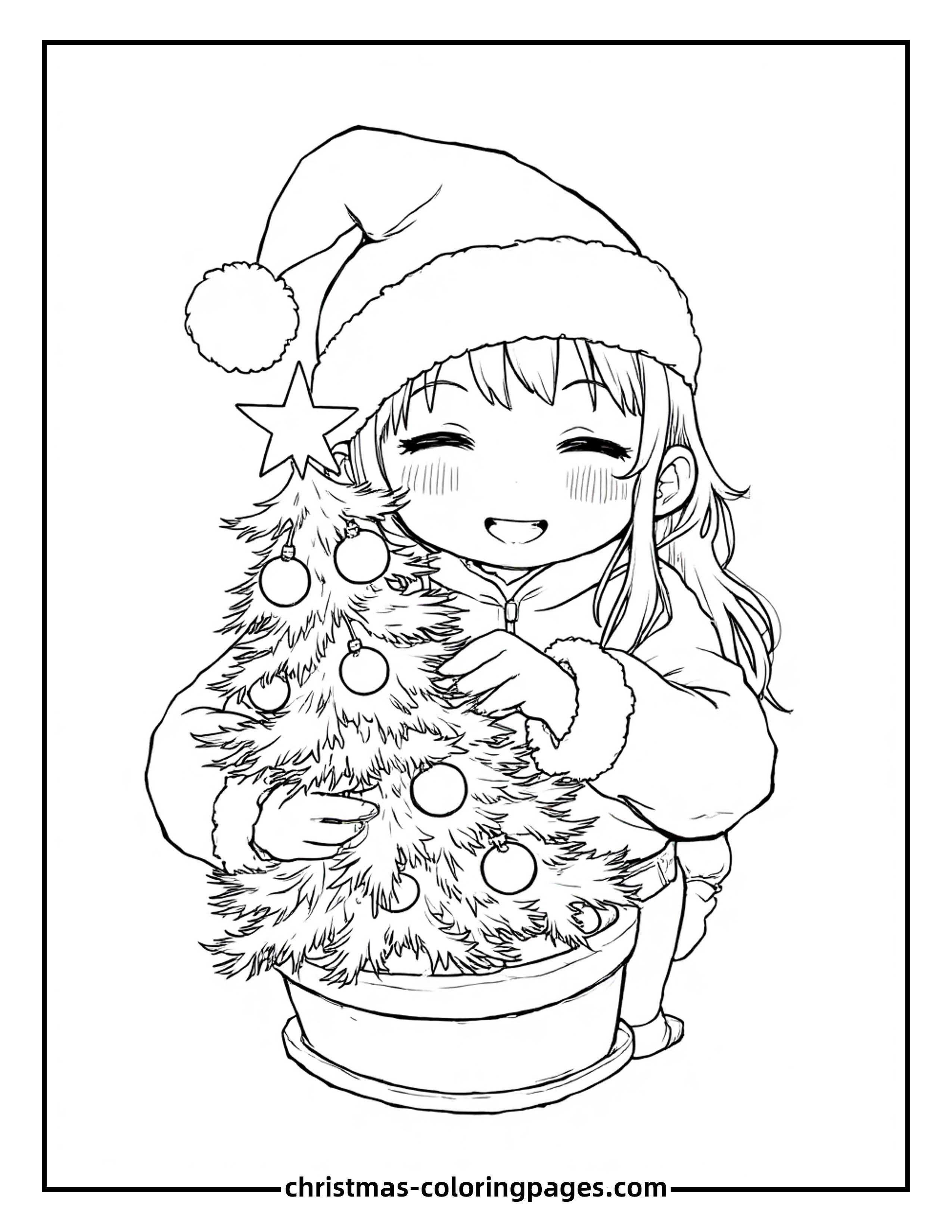 - Easy Christmas Coloring Pages – Child Decorating a Tree