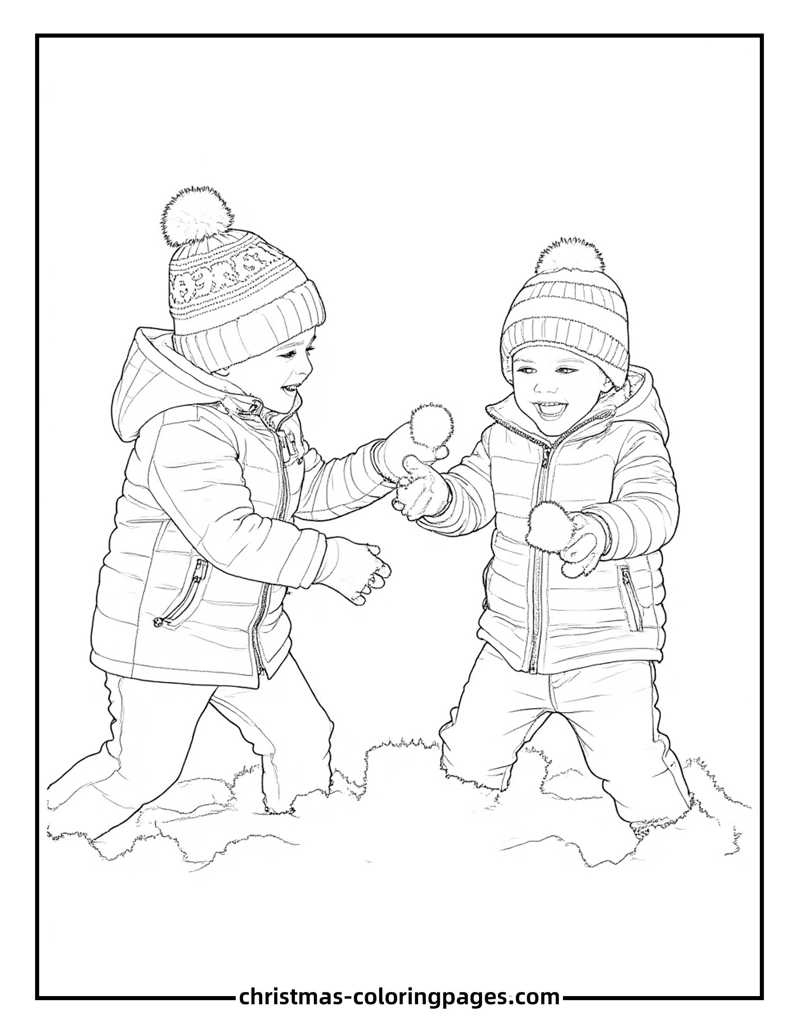 Easy Christmas Coloring Page – Kids Snowball Fight