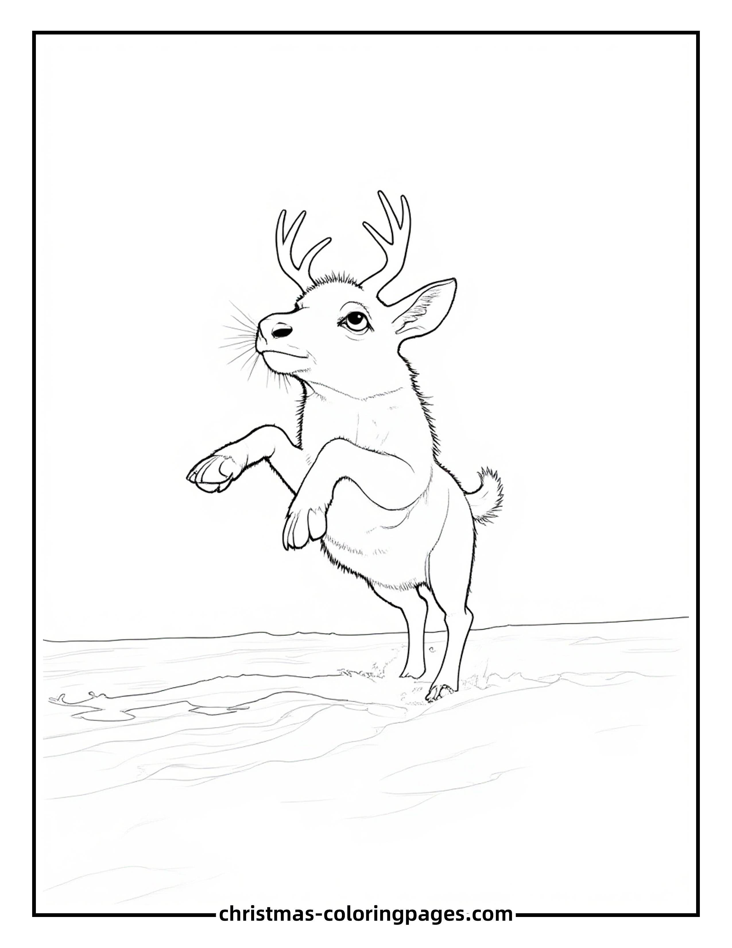 Easy Christmas Coloring Pages – Reindeer Jumping in the Snow