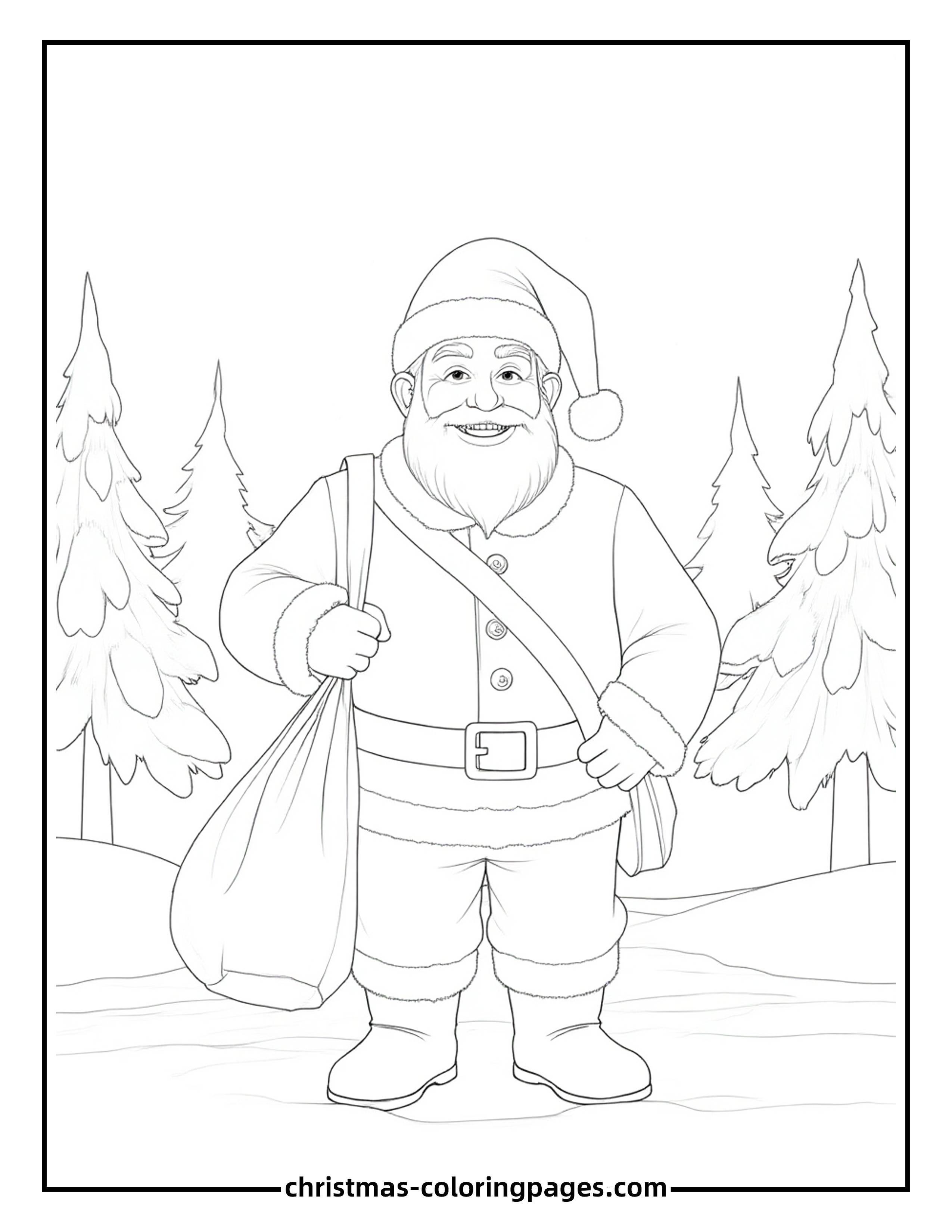 Easy Christmas Coloring Pages – Santa Holding Gifts in the Snow