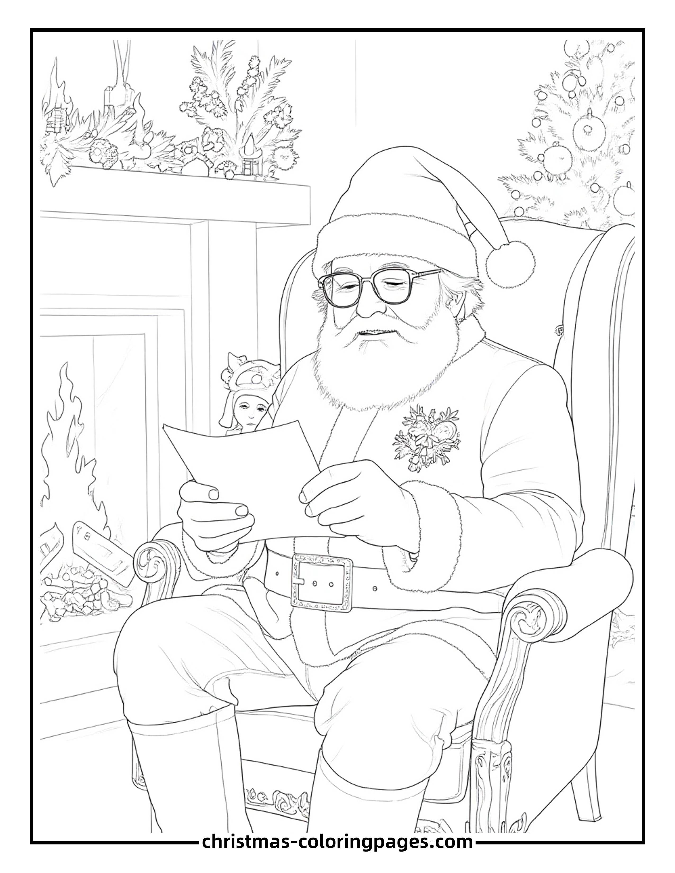 - Easy Christmas Coloring Pages – Santa Reading Letters by Fire