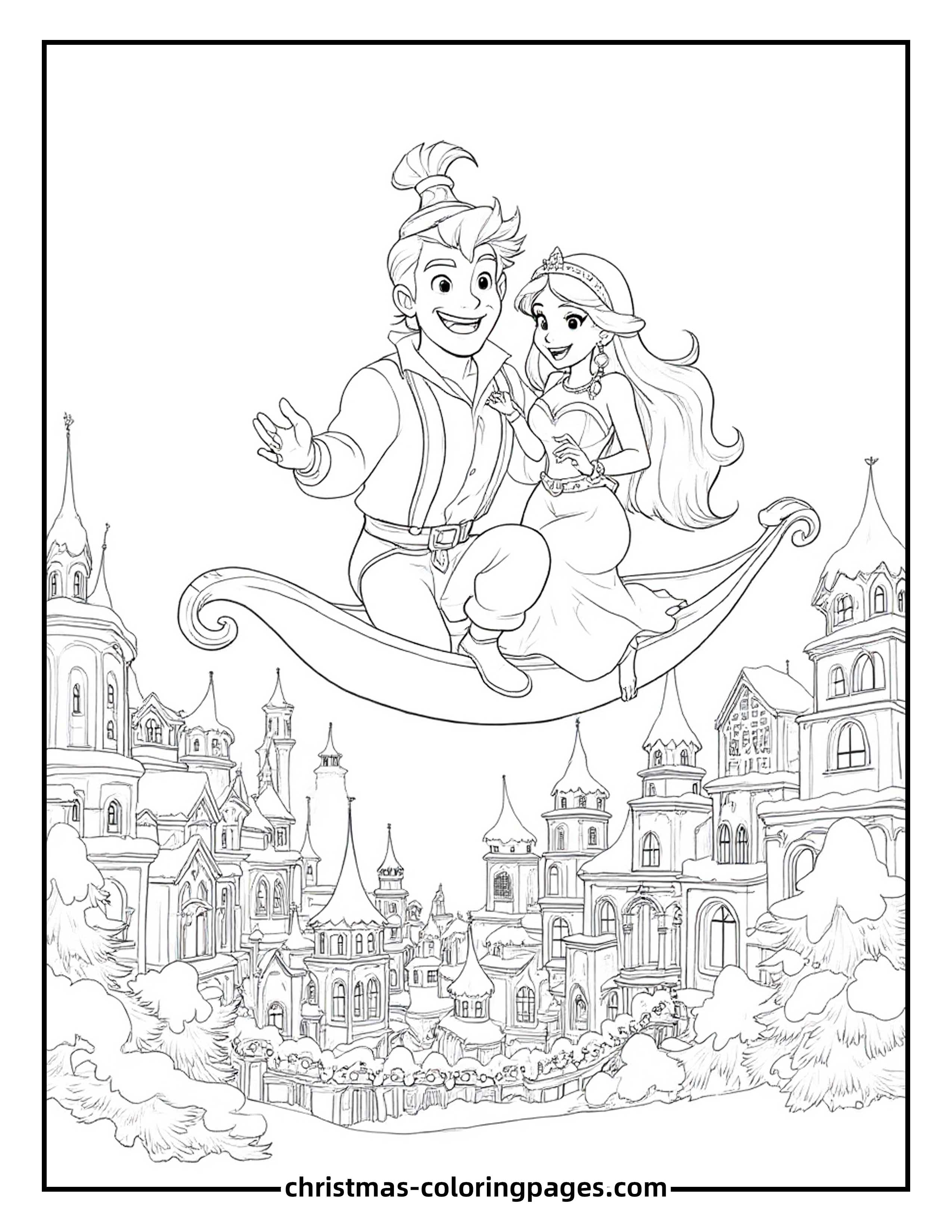 - Disney Christmas Coloring Page – Aladdin & Jasmine Christmas Flight