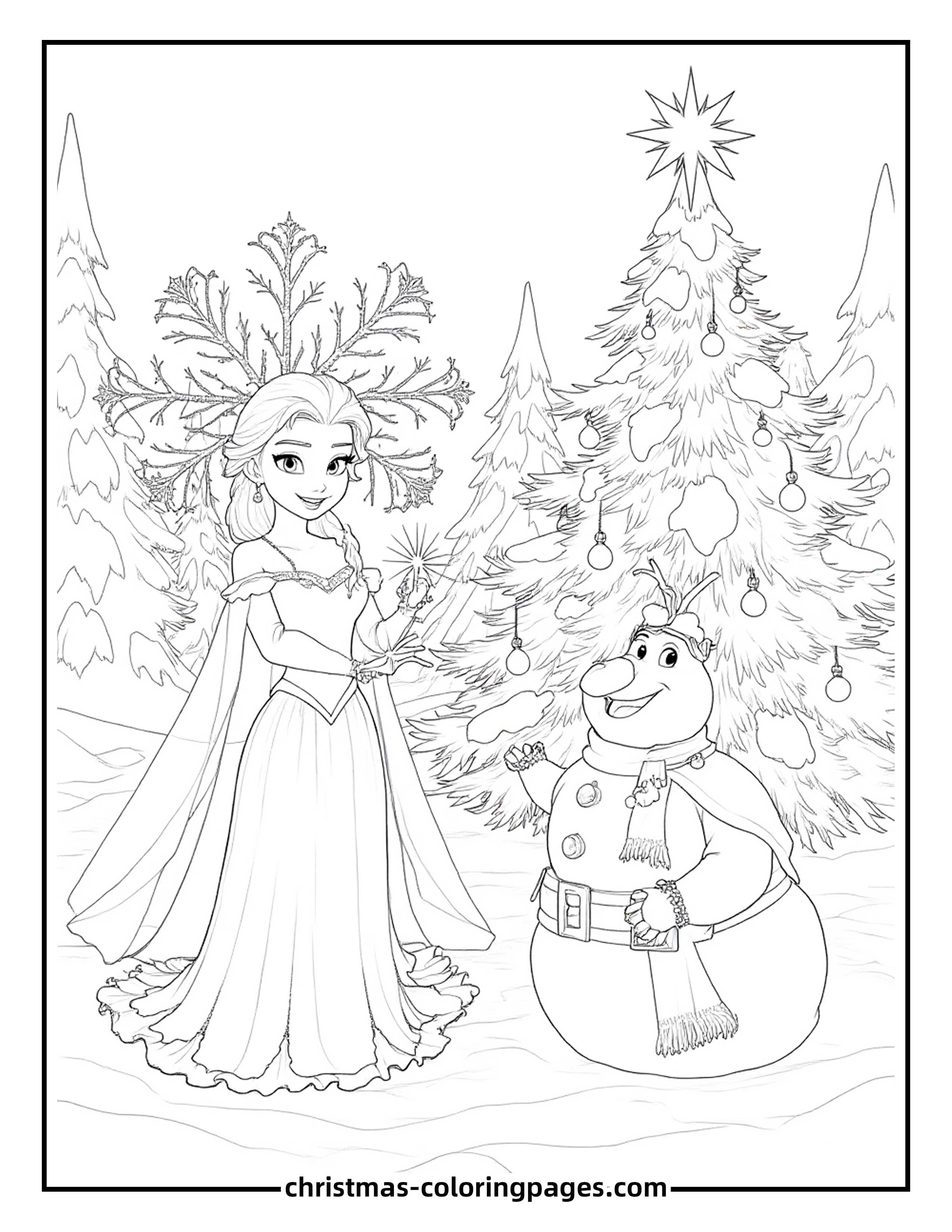 - Disney Christmas Coloring Page – Elsa and Olaf Snowy Scene