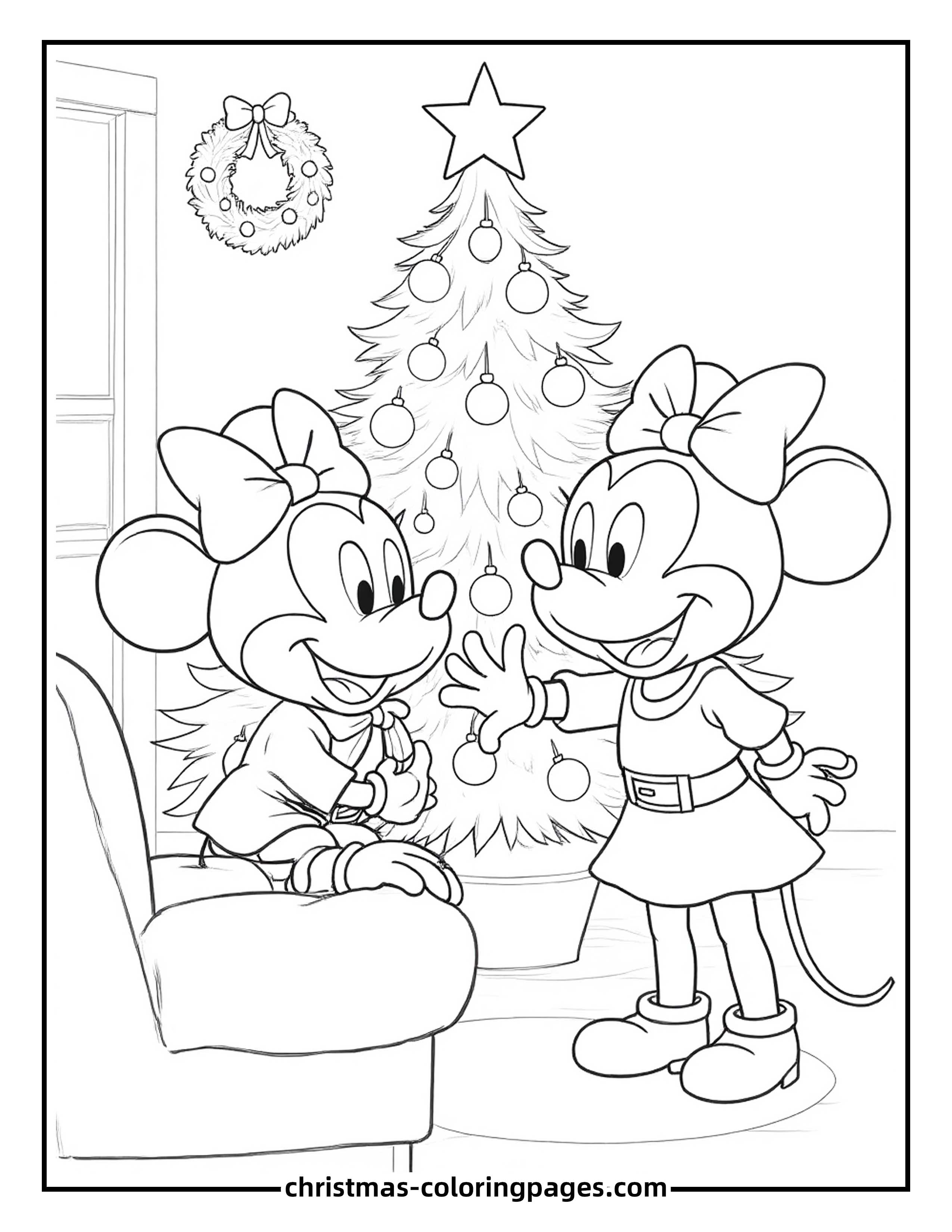 - Disney Christmas Coloring Page – Mickey and Minnie Decorating the Tree