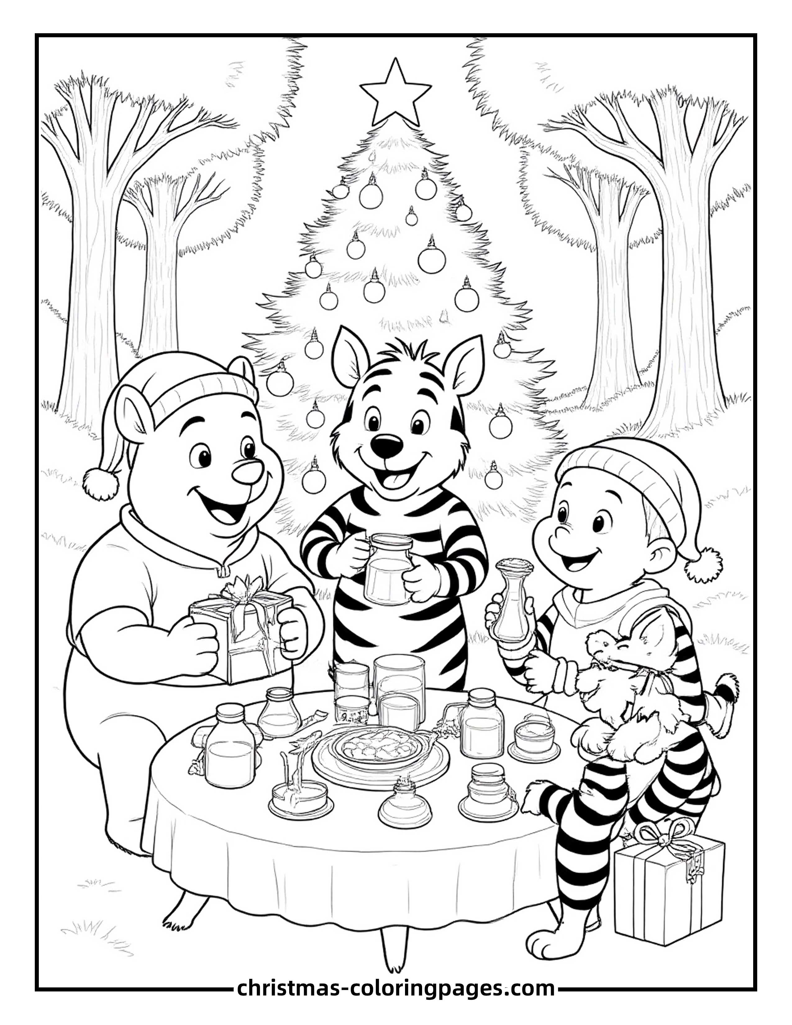 - Disney Christmas Coloring Page – Winnie the Pooh Christmas Party