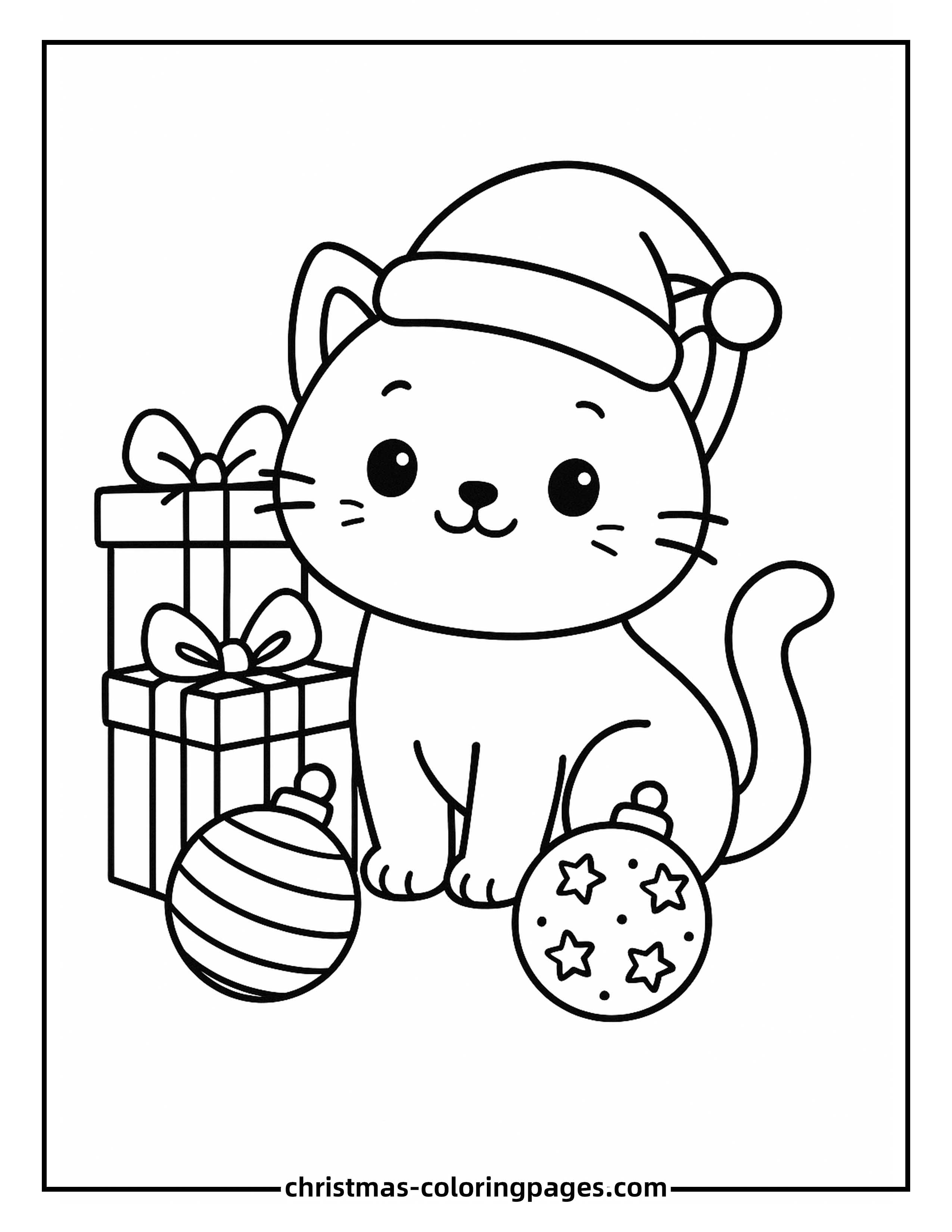 - Kawaii Christmas Cat Coloring Page